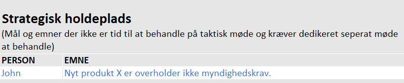 Download excel skabelon til ugenligt teammøde her.